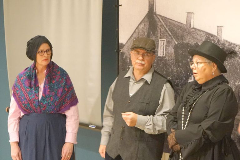 Im Rahmen des 75jährigen Bestehens des Heimatvereins Overledingerland war das Fehntheater im Fehn- und Schiffahrtsmuseum zu Gast. Vor einem begeisterten Publikum führte die Theatergruppe in der vollbesetzten Teestube wieder mehrere historische Theaterszenen auf. Zwischen den Auftritten zeigte der Heimatforscher Hinrich Heselmeyer Fotos aus den vergangenen 140 Jahren und erläuterte die Veränderungen anhand von neuen Fotografien.